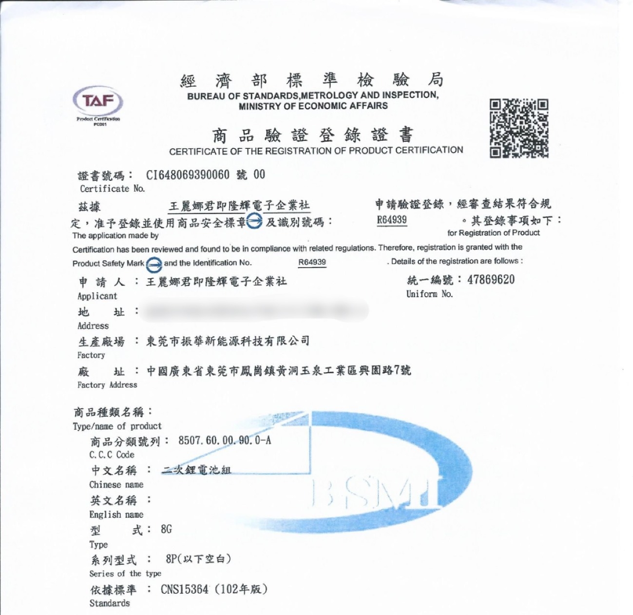 舉凡電池、電檢,皆有相關檢驗證明,合法經營、永續經營